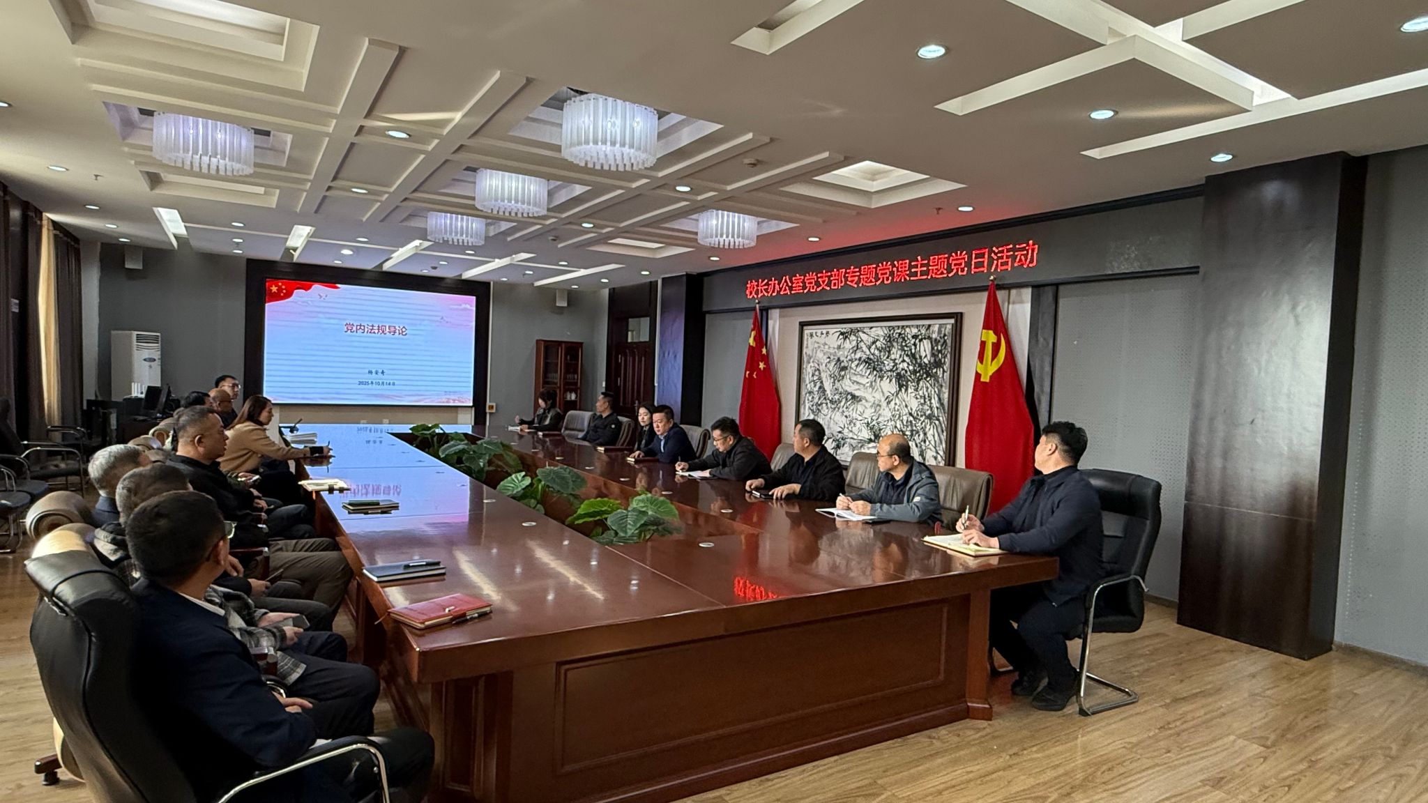 10月14日下午,校长办公室党支部在行知楼1015会议室举行党内法规专题党课。本次专题党课主讲人为校长办公室法律事务科杨安奇,党支部全体党员参加主题党课学习。专题党课由校长办公室主任、党支部书记赵士兵主持。